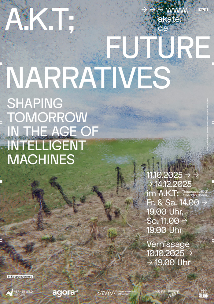The exhibition 'Future Narratives' runs from 11.10. - 14.12.2025 and takes place in cooperation with the School of Design at Pforzheim University. On display will be works by students from the MA Design & Future Making, Fashion, Industrial Design and Visual Communication degree programs.