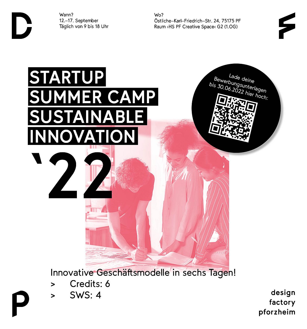 Die Design Factory Pforzheim veranstaltet zusammen mit dem INEC (Institute for Industrial Ecology) das Startup Summer Camp Sustainable Innovation 2022 um nachhaltige Geschäftsideen zu entwickeln.