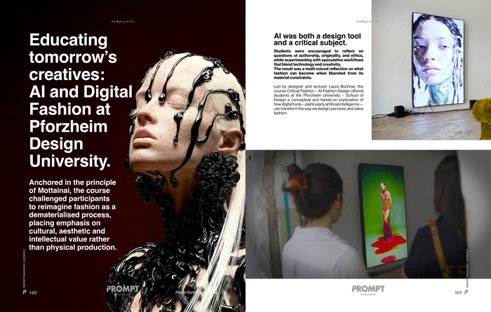 All ten student works can also be seen in the current issue of PROMPT Magazine. This gives the projects international visibility in the context of contemporary design and research. In addition to the works of the competition winners, this also creates a visual and content-related dialog on education, art and technology.