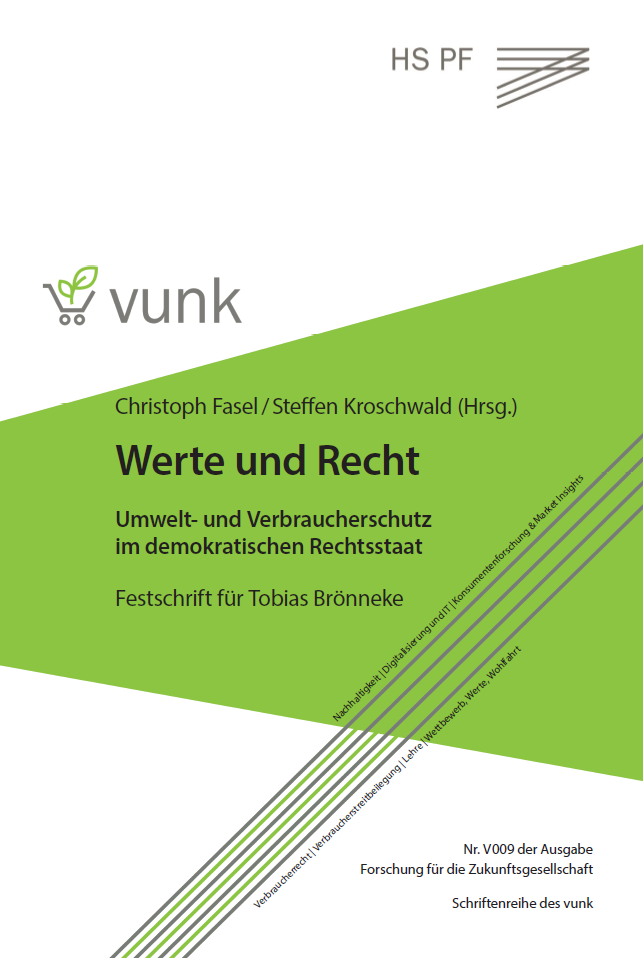 „Eine von Tobias Brönnekes besonders herausragenden Fähigkeiten ist es, Menschen unterschiedlicher Disziplinen zu vernetzen und für gemeinsame Vorhaben zu gewinnen. Das spiegelt »sein« vunk-Institut wider – ein von Beginn an interdisziplinäres Forschungsinstitut, das die drei Fakultäten Wirtschaft & Recht, Technik und Gestaltung der Hochschule vereint“. So unterstreichen es die beiden Herausgeber der Festschrift, Prof. Dr. Christoph Fasel und Prof. Dr. Steffen Kroschwald in ihrem Vorwort. Diesem Geist folgend, vereinen sich in der Festschrift Menschen mit Beiträgen aus unterschiedlichsten Fachgebieten und mit unterschiedlichsten Hintergründen. Das Werk zeigt damit auch den Facettenreichtum der Interessen- und Aktivitätsgebiete von Tobias Brönneke. Ihn treiben Fragen der Ethik in modernen Ökonomien ebenso um wie die Beziehung der Menschen zur Natur und Umwelt. Sein Herz schlägt für den Verbraucherschutz, die Verbraucherforschung und -politik, deren Institutionen und Wege der Verbraucher zur Durchsetzung ihrer Rechte. Und ihn befassen schließlich auch die Herausforderungen der Digitalisierung für Menschen – insbesondere die dabei Schutzbedürftigen.
