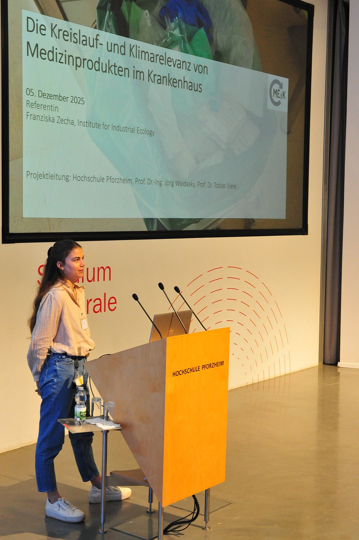 An der Hochschule Pforzheim arbeitet seit 2024 die INEC-Forschungsstelle „Kreislaufwirtschaft im Gesundheitswesen“ in mehreren Forschungsprojekten an kreislaufwirtschaftlichen Ansätzen. Ihr Direktor Prof. Jörg Woidasky skizzierte einleitendend die Forschungsarbeiten der Hochschule Pforzheim vor allem zur Produkt-Verbrauchsmessung, der Materialbestimmung und der Bestimmung kreislaufwirtschaftlicher Kennwerte für Krankenhäuser. Das Entwicklungsziel ist hier ein aus Stoffstrom- und Energiesicht transparenten Krankenhauses als Voraussetzung für ressourceneffiziente Prozesse im Gesundheitswesen.