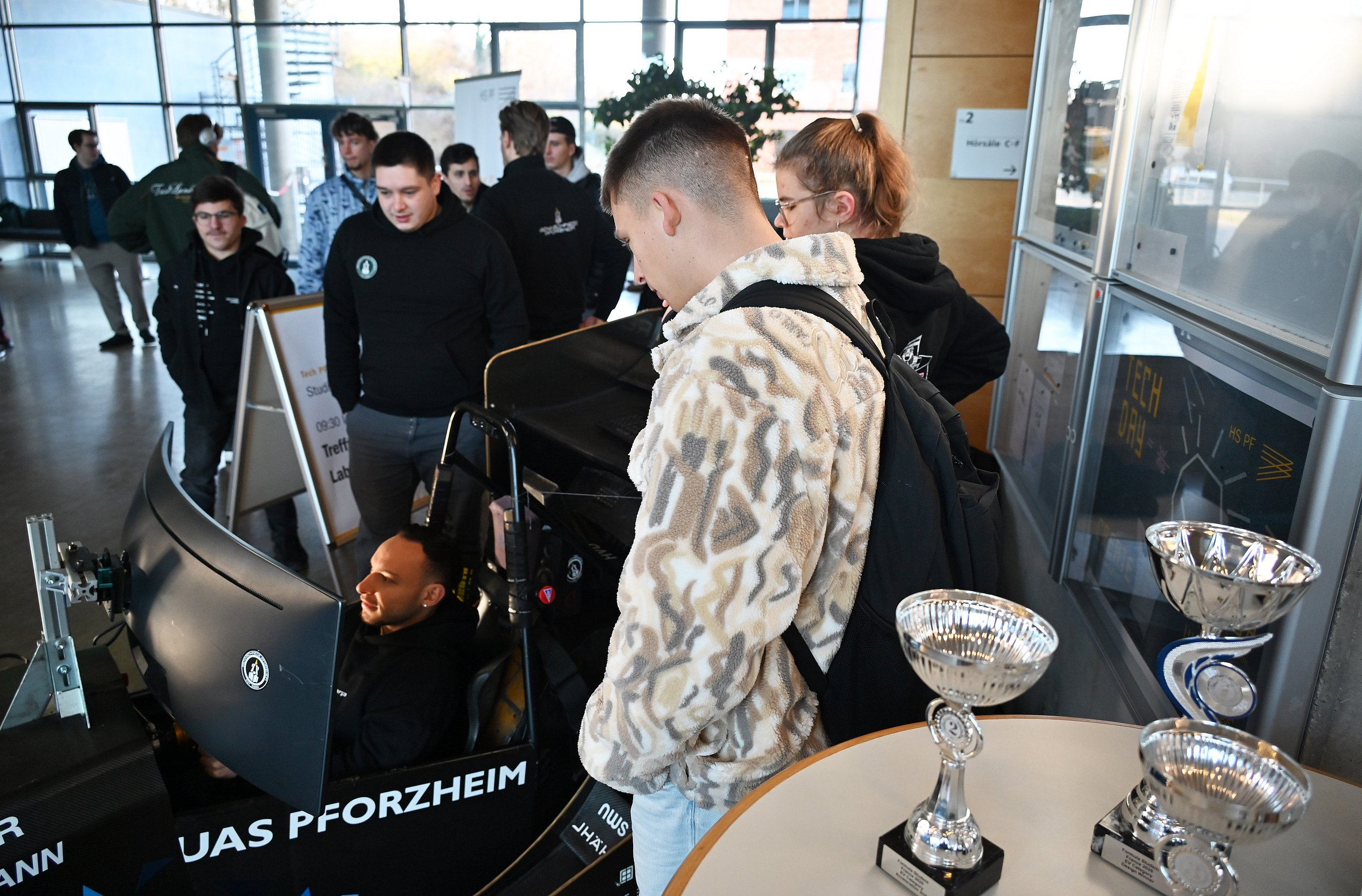 Auch die Verbindung von Technik und Wirtschaft zog viele an: Beim interaktiven Einblick in das sogenannte „Target Costing“ wurde anhand eines Burgers gezeigt, wie Produktentwicklung und Kostenplanung zusammenlaufen – überraschend praktisch und viel näher am Alltag, als man im ersten Moment denkt. Wer lieber direkt mechanische Power spüren wollte, konnte sich am Stand der „Rennschmiede“ von einem echten Formula-Student-Rennwagen begeistern lassen und mit den Studierenden über Konstruktion, Teamarbeit und internationale Wettbewerbe sprechen.
