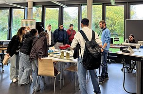 Hier erhielten die Schüler*innen einen praxisnahen Einblick in die vielfältigen Lehr- und Forschungsaktivitäten der Fakultät. Mitarbeitende und Studierende stellten verschiedene Labore und Projekte vor – darunter das Labor für Biomedizinische Analytik, das Labor für Leichtbau, das Labor für Nachhaltige Produktentwicklung sowie die studentische Initiative Rennschmiede. Die Gruppe zeigte großes Interesse an den vorgestellten Themen und nutzte die Gelegenheit, Fragen zu Studieninhalten, Forschungsansätzen und Berufsperspektiven im technischen Bereich zu stellen.