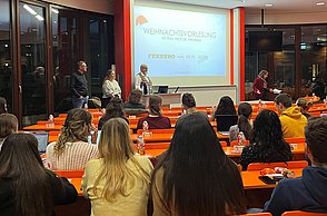 Im Anschluss übernahm Dorothea Ruthe das Wort und stellte die vielfältigen beruflichen Möglichkeiten bei Ferrero vor. Von Praktika über Abschlussarbeiten bis hin zum Berufseinstieg bietet das Unternehmen spannende Perspektiven für Studierende und AbsolventInnen der Hochschule Pforzheim.