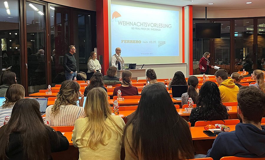 Am 9. Dezember 2025 fand an der Hochschule Pforzheim die traditionelle Weihnachtsvorlesung mit Uwe Storch, Head of Media bei Ferrero Deutschland statt. Das Thema der diesjährigen Weihnachtsvorlesung „Consumer Engagement Program und 1st Party Data bei Ferrero“, vorgestellt von Eddy Perner, Manager Consumer Engagement Program, versprach eine spannende Auseinandersetzung mit neuen Formen der Konsumentenkommunikation bei einem der größten FMCG-Anbieter in Deutschland. Das Ferrero Team vervollständigte Dorothea Ruthe, Specialist Employer Branding & Talent Acquisition bei Ferrero.