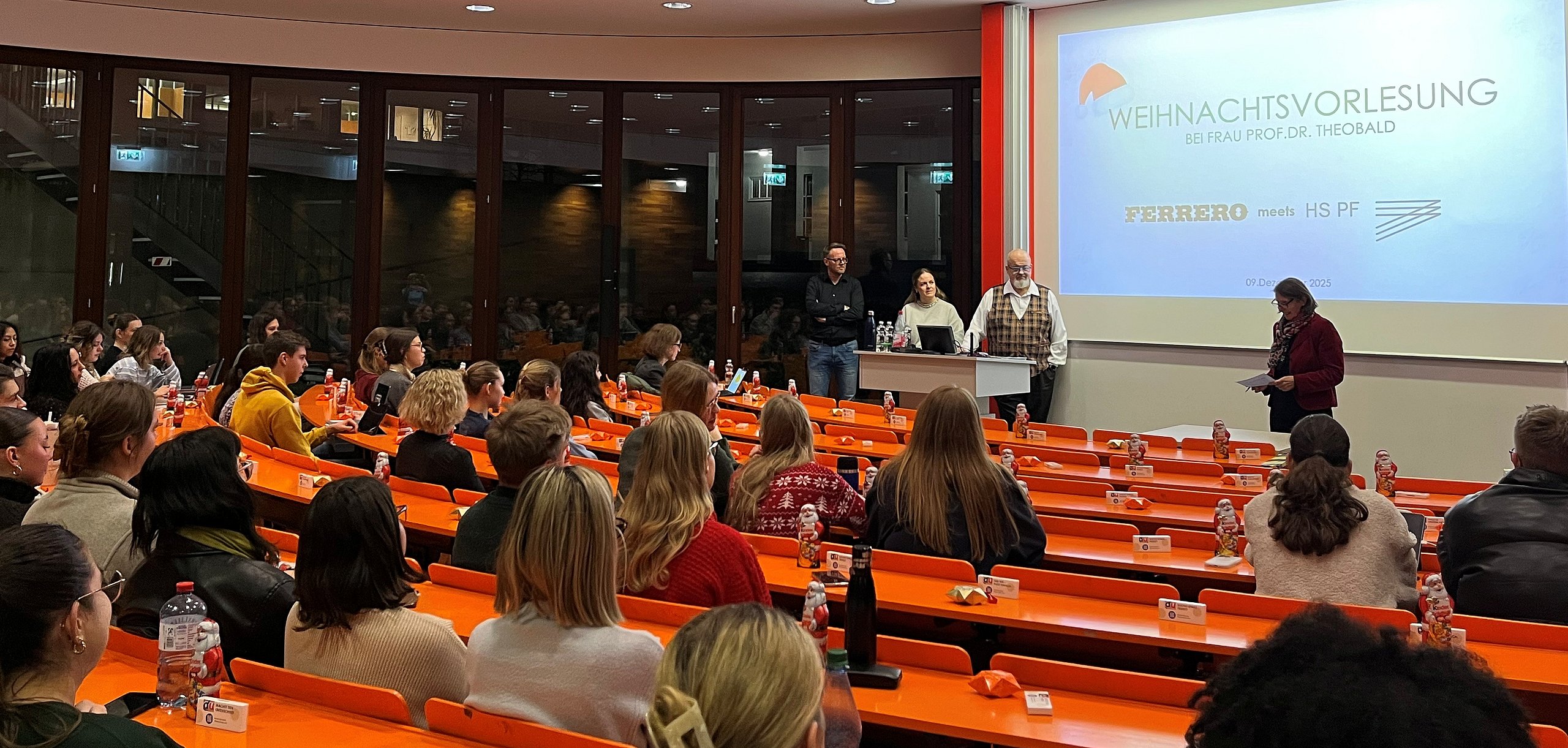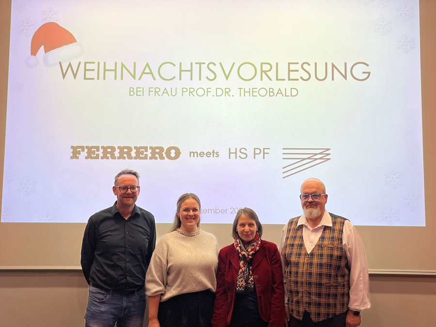 Wir bedanken uns herzlich bei Uwe Storch, Dorothea Ruthe und Eddy Perner für diese lebendige Weihnachtsvorlesung und wir freuen uns darauf, Ferrero im nächsten Jahr wieder an der Hochschule Pforzheim begrüßen zu dürfen.