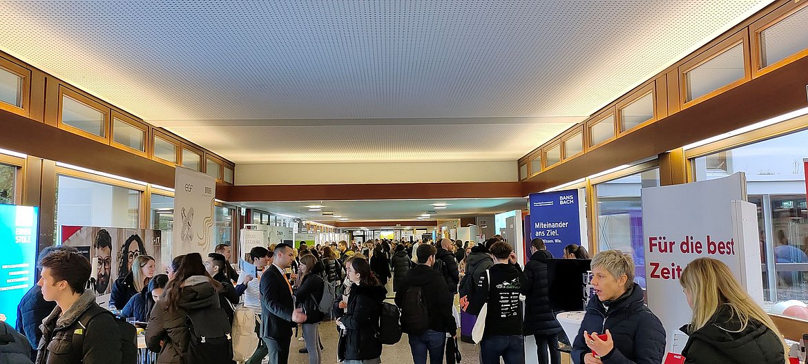December marks the time for Pforzheim University´s career fair Campus-X, where companies and students connect with each other on campus to get to know more about one another. This semester more than 70 companies put up their stalls in various areas of the university campus to promote themselves and talk about the career opportunities they offer to the students. World-renowned companies in the fields of consulting, finance, manufacturing, FMCG and IT visited the university to attract top talent.