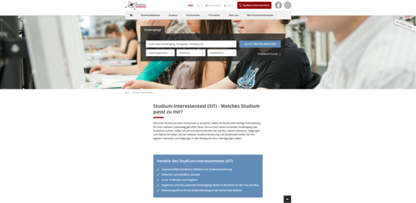 Finde online heraus, welcher Studiengang und Beruf zu Deinen Interessen und Fähigkeiten passt: www.was-studiere-ich.de