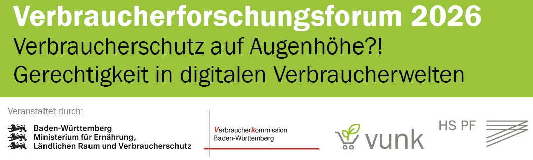 Das Verbraucherforschungsforum 2026 mit dem Titel „Verbraucherschutz auf Augenhöhe?! Gerechtigkeit in digitalen Verbraucherwelten“ bringt Forschende und Praxisakteure zu einem inter- und transdisziplinären Austausch der Verbraucherwissenschaft über Gerechtigkeitsfragen des Konsums in der Digitalität zusammen.